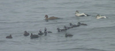 The Common Eiders were in high breeding plumage, though -- impressive with their lime-green on the backs of their heads and their pinkish breasts.